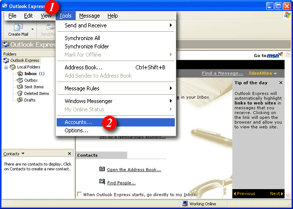To begin open Outlook Express  |